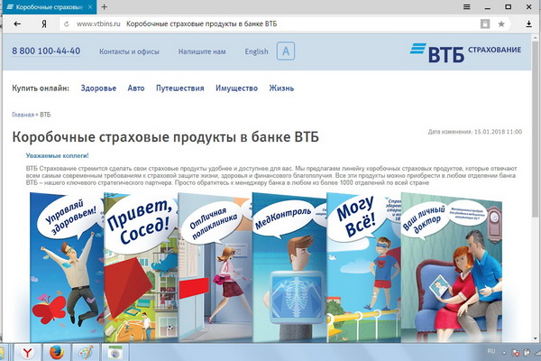 «ВТБ страхование» среди прочих услуг предлагает гражданам приобрести коробочную страховку.