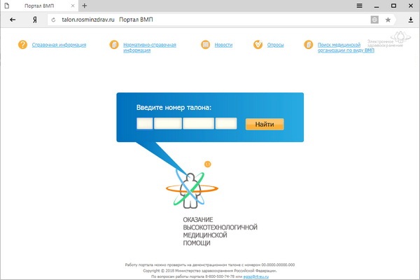 Портал был разработан Министерством здравоохранения для информационной поддержки граждан в сфере оказания высокотехнологичной медицинской помощи.
